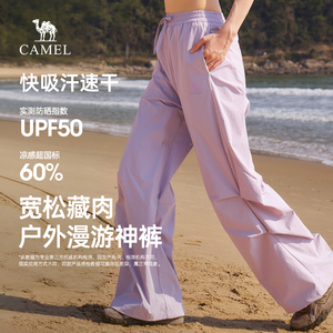 骆驼女装运动裤2026春新款紫色凉感防晒速干宽松工装裤休闲阔腿裤