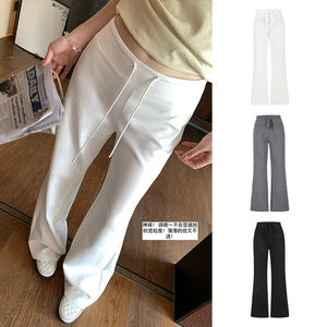 MosesQueen魔西女王白色直筒运动裤抽绳高腰时髦凉感薄款阔腿裤