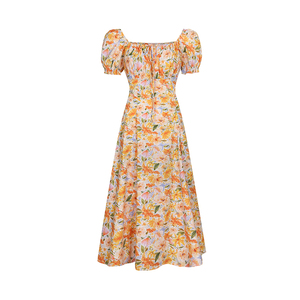 安妮不火海边度假纯棉碎花长裙女2025春夏新款微胖大码收腰连衣裙