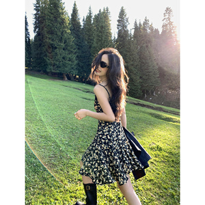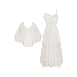 安妮不火 塞纳杏蝶笺 蝴蝶蕾丝雪纺仙女裙微胖大码收腰吊带裙套装