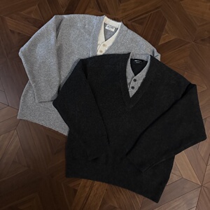 老钱风深V领假两件毛衣高级感