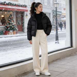 秋冬款加绒加厚人字纹毛呢阔腿裤