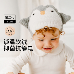 嫚熙婴儿帽子秋冬款半边绒保暖防风胎帽小企鹅帽子新生儿男女宝宝