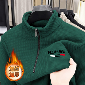 巧琳云痞帅男士时尚百搭卫衣ins奥粒绒加绒加厚设计感半拉链上衣