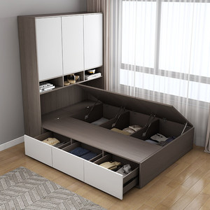 榻榻米床柜一体组合带书桌小户型多功能储物柜双人床卧室床尾衣柜