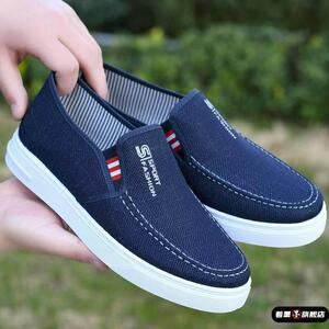 男士一脚蹬休闲平底布鞋老北京工作鞋防滑透气男鞋中老年懒人鞋子