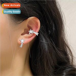 Flash diamond pentagram meteor ear clips fall winter exquise