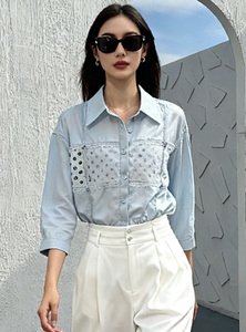 设计感翻领花朵刺绣衬衫