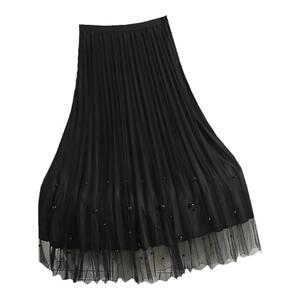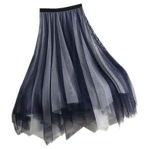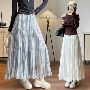 新款纯色网纱拼接半身裙女春季韩系气质温柔百搭显瘦a字大摆长裙