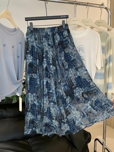 法式复古印花半身裙女2025夏季新款时尚设计感高腰显瘦中长款裙子