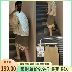 Hazel春上新!感重工钉珠法式复古风格拼接珠片半身裙A字裙