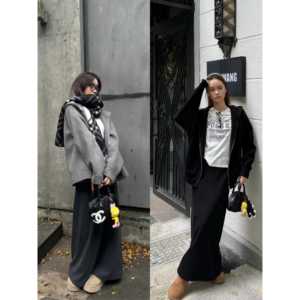 SEVEN也醋酸羊毛半裙女韩版慵懒裙子2024新款冬季灰色毛呢半身裙