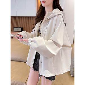 户外出行春夏女士纯色冰丝短款防晒衣大帽檐遮阳透气带帽子防晒衣