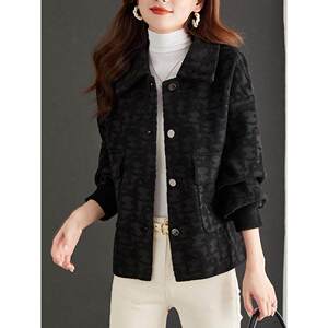春秋季2025年新款开衫宽松时尚外搭短款黑色翻领保暖水貂绒外套女