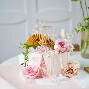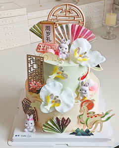 周岁宝宝蛋糕装饰国风中式兔子宝宝生日蛋糕装饰摆件周岁甜品台