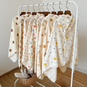 ins儿童纯棉浴巾四层纱布宝宝斗篷式带帽游泳裹巾男女童吸水浴袍