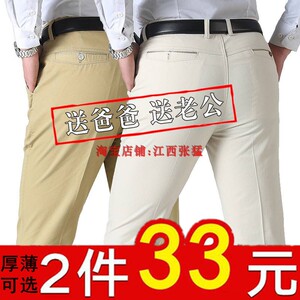 纯棉春夏季休闲裤男宽松直筒裤高腰深档商务西裤中老年男士长裤