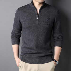2022冬季中年男士半高领拉链毛衣加厚保暖爸爸装纯色羊毛针织衫