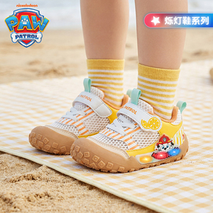 汪汪队男童鞋2026年夏季闪灯单网凉鞋软底防滑轻便透气小童运动鞋