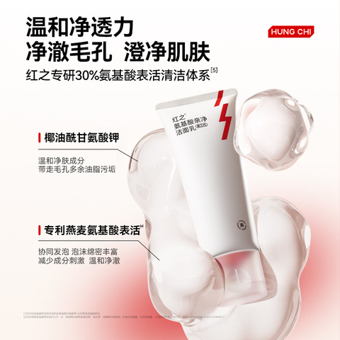 红之小亲净氨基酸洗面奶,深层清洁毛孔温和控油