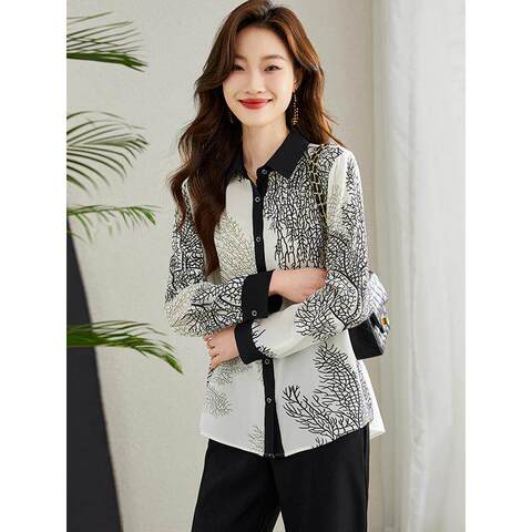 100%高级感轻奢减龄洋气翻领纯真丝上衣女2025秋季新款桑蚕丝衬衫