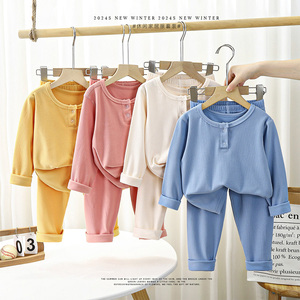 儿童德绒无骨家居服套装女童秋衣秋裤睡衣男宝宝保暖内衣两件套