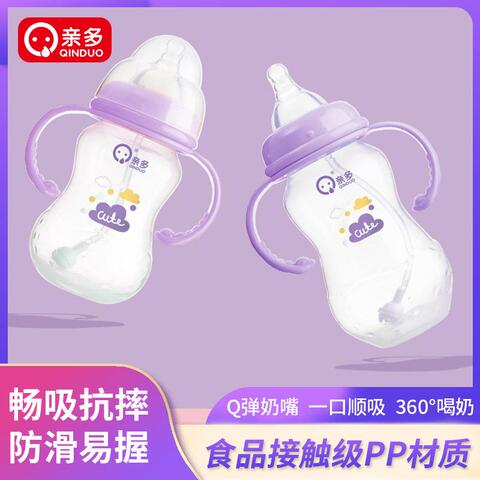 奶瓶吸管式宽口径耐摔新生婴儿塑料pp初生宝宝奶壶带吸管手柄