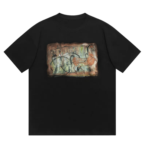 68¥ CZ007 bJnUUu1rwpO¥ https://m.tb.cn/h.iXlSON7 【马上有钱】NANAMO鼐墨 男士休闲敦煌国风马车印花圆领短袖T恤