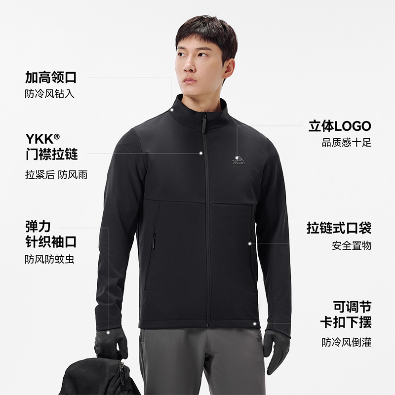 伯希和立领软壳衣男防风保暖冲锋衣内胆徒步登山外套休闲夹克上衣
