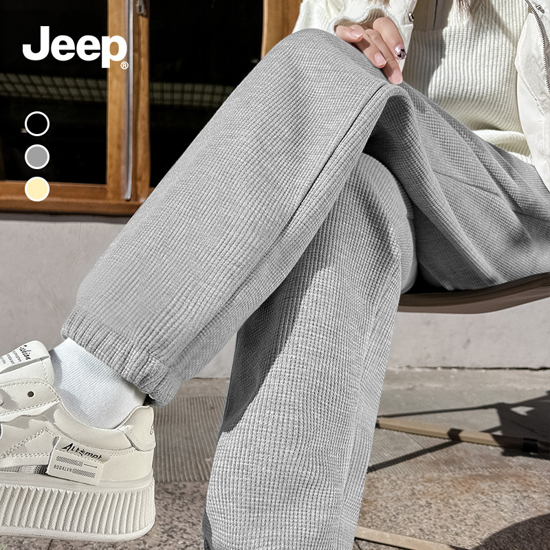 38¥ tG-#22>lD za2FfESJCF2¥ https://m.tb.cn/h.731o4Fw JEEP吉普加绒裤子女2025新款秋冬束脚卫裤白色华夫格直筒休闲裤Y