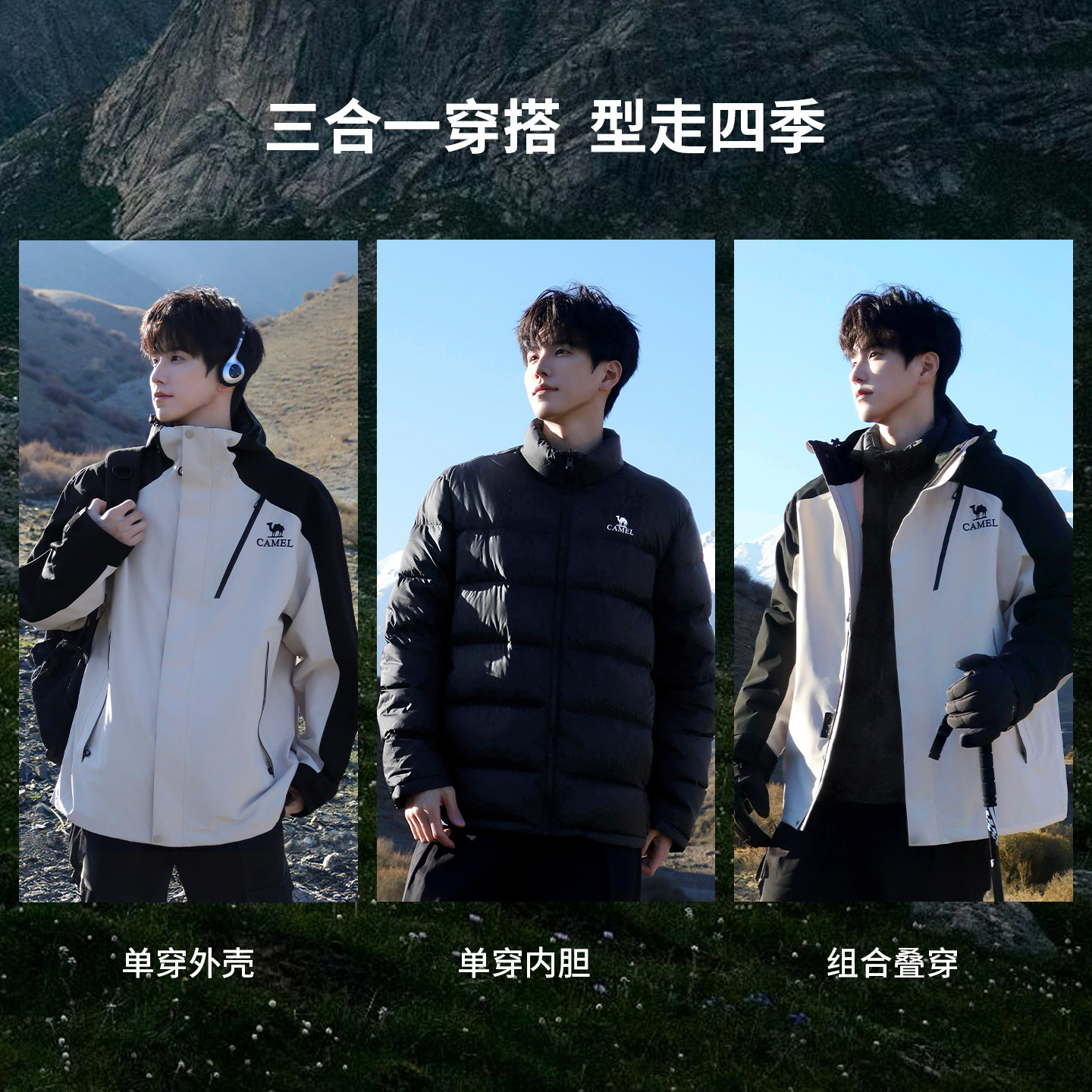【礼.金后433.78,凑消费卷更低】,[王俊凯同款]骆驼户外凯甲冲锋衣男三合一防水防风外套女2024
