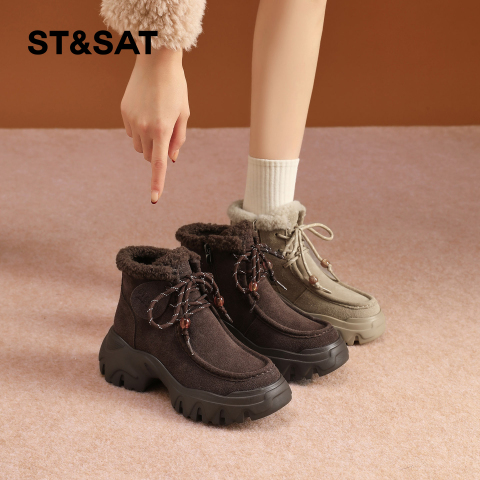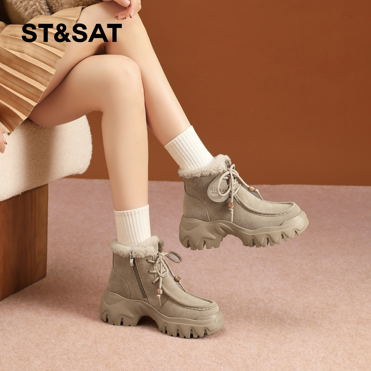 星期六雪地靴女2025冬季新款短筒女款靴子短靴加绒加厚保暖马丁靴