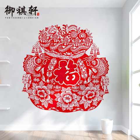 19¥ CZ001 6feZfvrXfk5¥ https://m.tb.cn/h.7W8mReh 2026马年客厅装饰春节新年中国风绒布剪纸大福字窗花玻璃贴纸贴墙