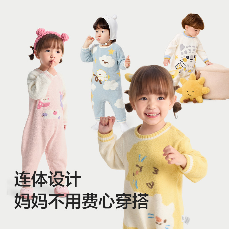券后:89元叠消费券:80,巴拉巴拉婴儿连体衣新生儿爬服宝宝衣服2025款半边绒冬装软萌舒适。