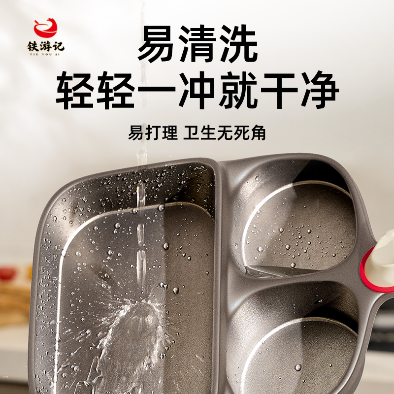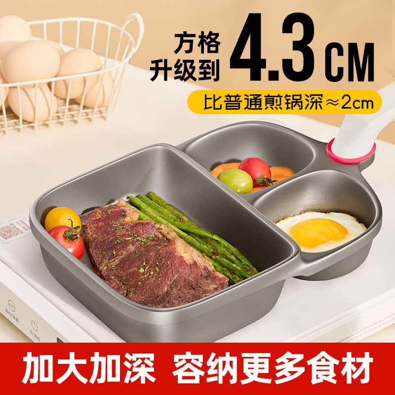 铁游记!早餐锅三合一煎锅,升级加厚通体钛金材质,不糊锅、不粘锅、少油烟,耐磨耐刮,三孔分区设计,一次搞定早餐花样,拥有早餐锅等于蛋堡锅+牛排锅+煎锅,加大加深!明火/电磁炉通用版!【赠退货宝】