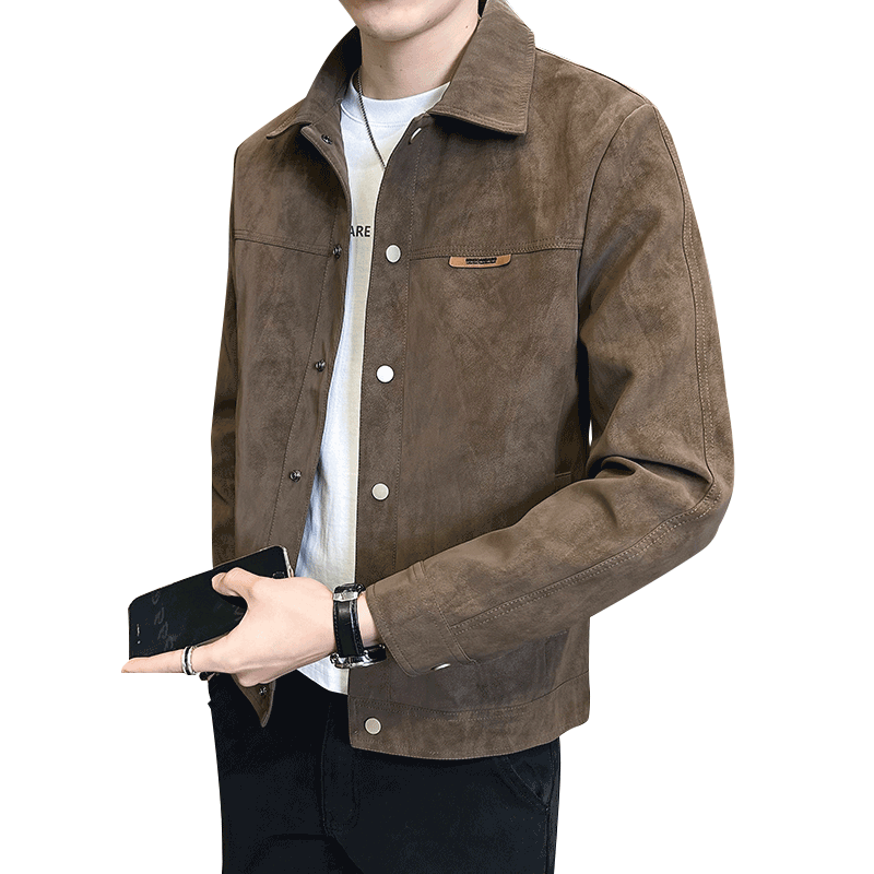 高级感翻领春秋季麂皮夹克外套