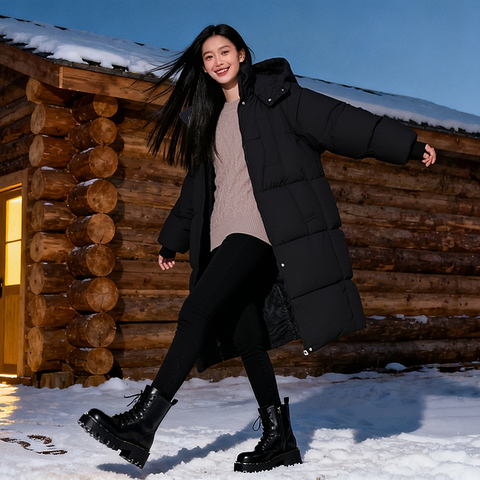 361长款羽绒服男装女装2025冬季连帽加厚保暖外套高充绒羽绒外套