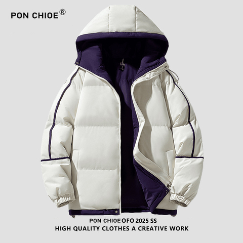ponchioe撞色棉衣男款冬季新款加厚保暖棉袄连帽防风羽绒棉外套男