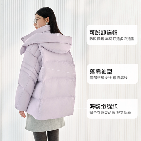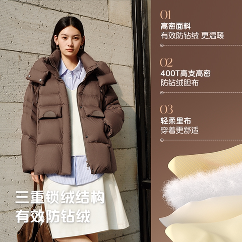艾莱依2025冬季新款连帽羽绒服女