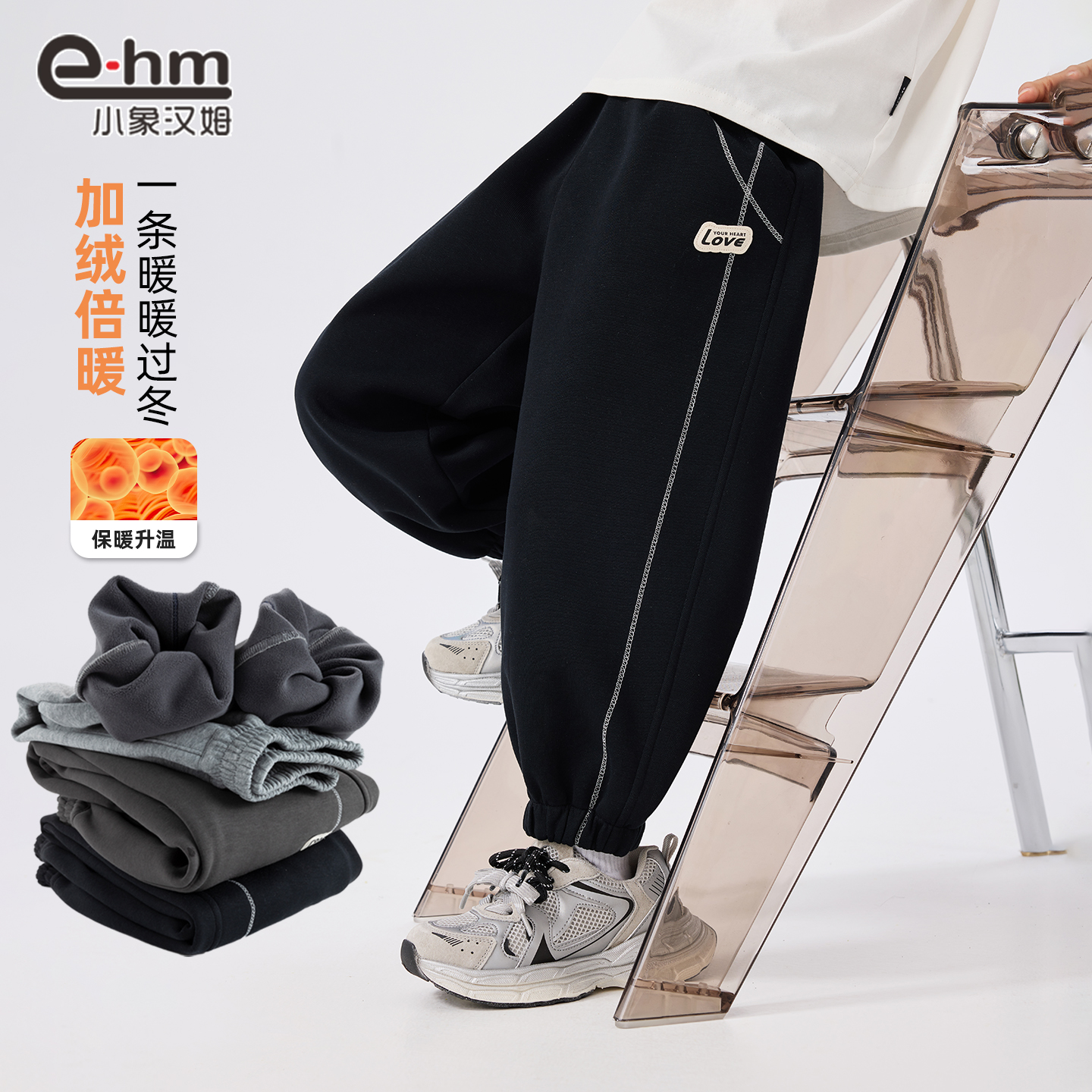 小象汉姆男童冬装加绒运动裤