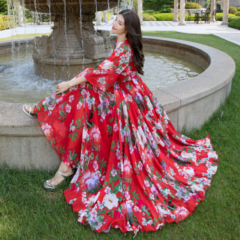 98¥ tG-#22>lD WwZ1fEUlabr¥ https://m.tb.cn/h.735Ru84 2025新款女装夏季雪纺海边度假沙滩到脚踝拖地超仙大摆长裙连衣裙