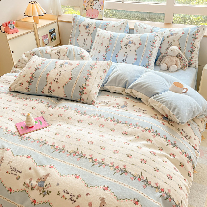 牛奶绒四件套加厚珊瑚绒床单被罩南通床上用品三件套冬季加绒被套