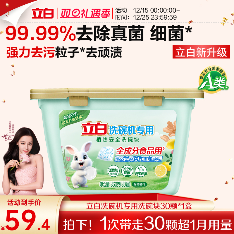 官方立减20元+券10元+88vip省5元+淘金币抵扣5.29元后约89.61元,消费券+限时**3元更实惠,立白植物源洗碗机A类洗碗块,孕婴全家餐具安心洗,食品级配方,重油焦糊,一块洗净,超赞~