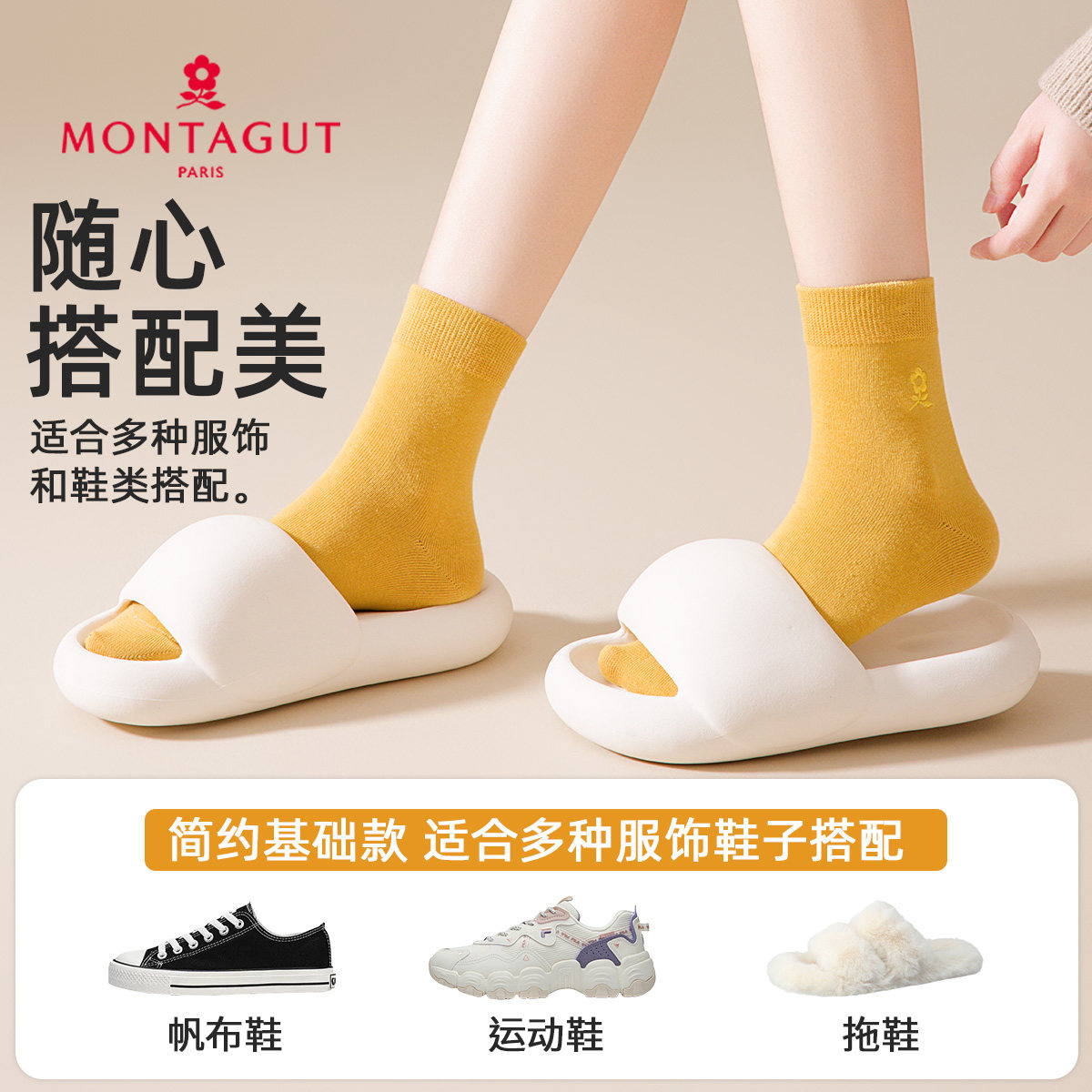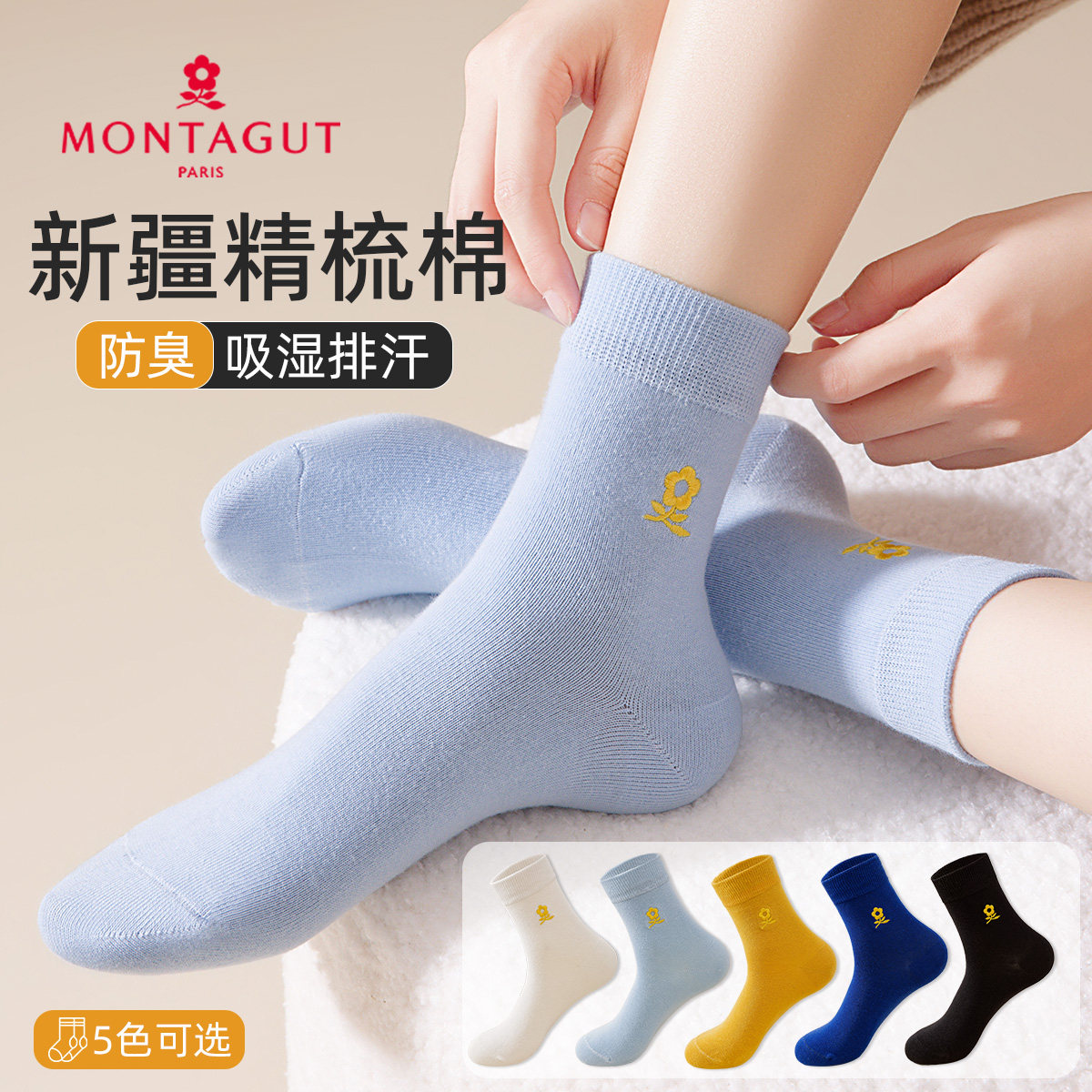 montagut刺绣中筒棉袜女秋冬加厚