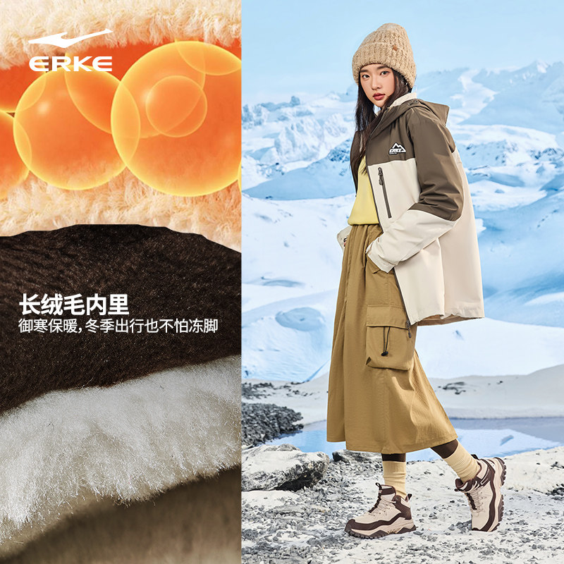 鸿星尔克新到女款休闲鞋,加绒设计,暖阳秋冬不冻脚。