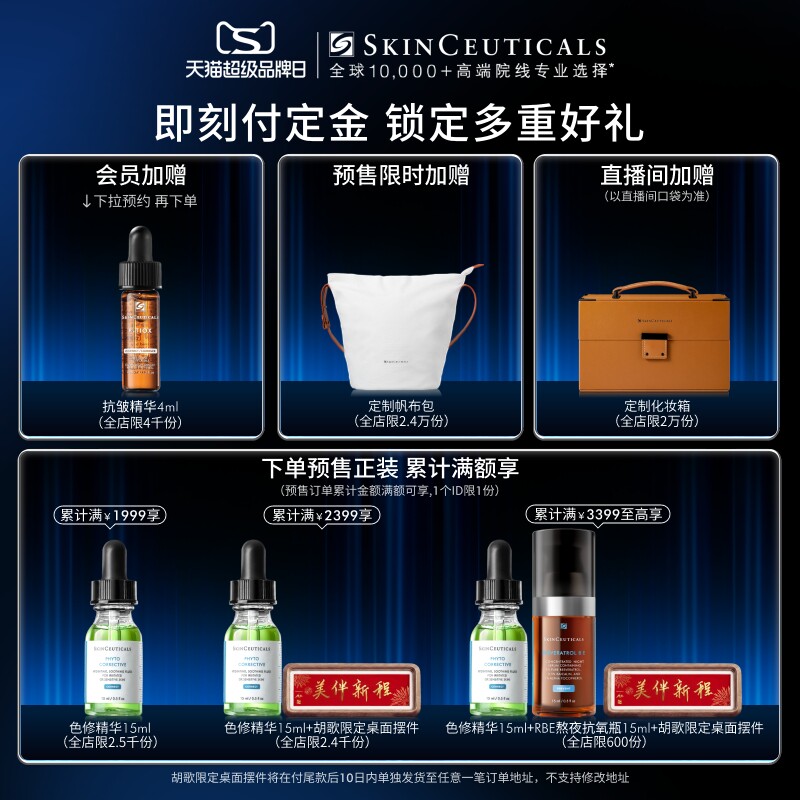 【胡歌官宣代言】券后1039(定金100,尾款939)买抗皱精华30ml到手57ml(15ml+4ml*2+4ml(会员加赠)),直播间加赠定制帆布包,下拉商品详情0.01加赠:防晒小银伞15ml,3倍促胶原,淡化全脸9大纹路!模拟肉毒除皱肌理,抗动态纹,科技还是要看修丽可!