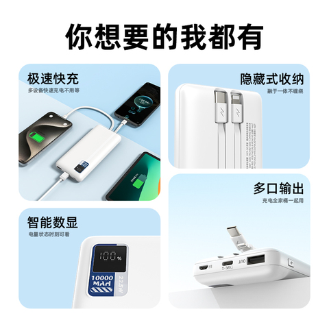 新国标3C认证星系源充电宝‼️1万毫安自带线仅39.9元,自带线22.5W快充充电宝