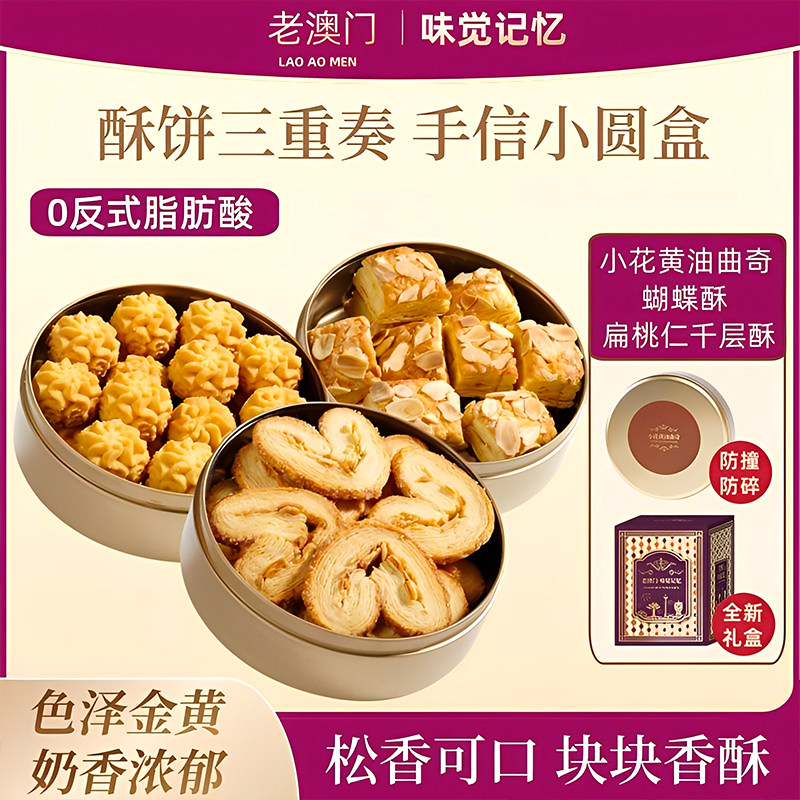 澳门风味小金盒手信千层蝴蝶酥黄油小花曲奇饼干糕点零食特产送礼