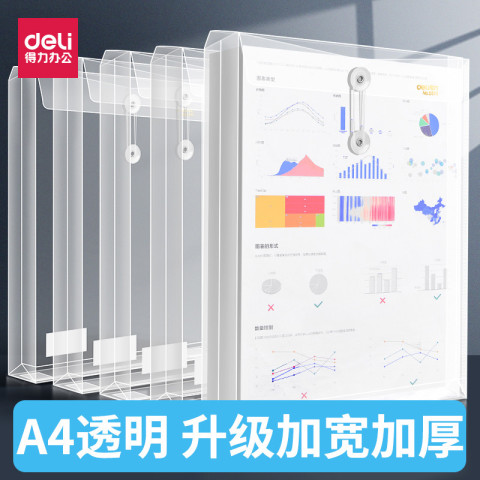 12只得力透明档案袋塑料a4加厚加大绕绳子文件收纳袋大容量装资料