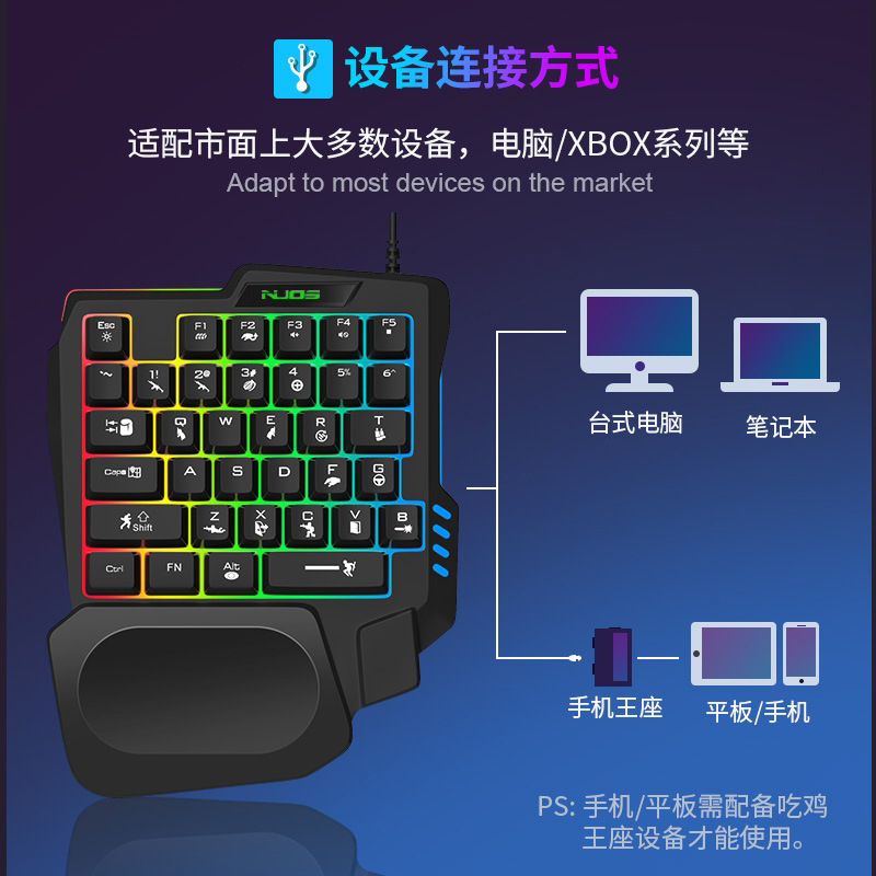 单手键盘+手游吃鸡王座!!超.便捷!操作流.畅!炫彩灯光酷炫!!游戏体验升级,操控更**!!关键适合吃鸡玩家!!